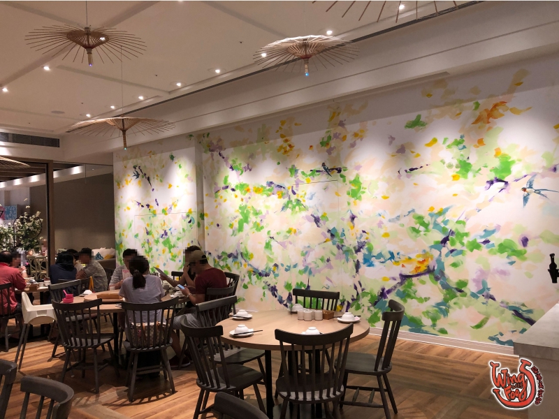 等餐的同時,在餐廳內四處逛逛,其中對這片鮮豔的花牆感興趣,隨口問了為什麼要彩繪這片牆?