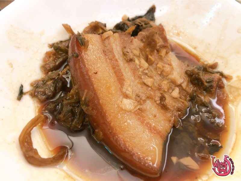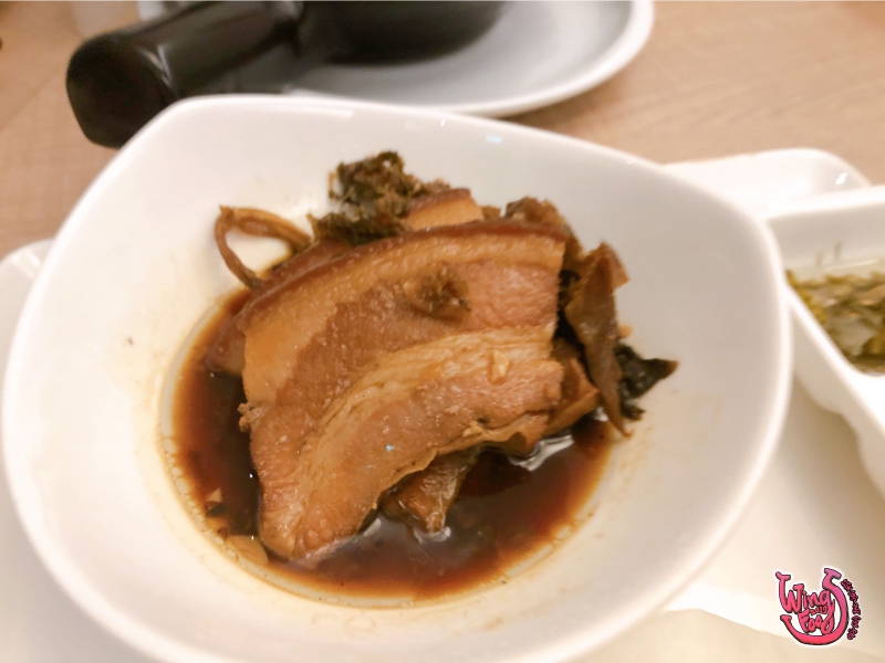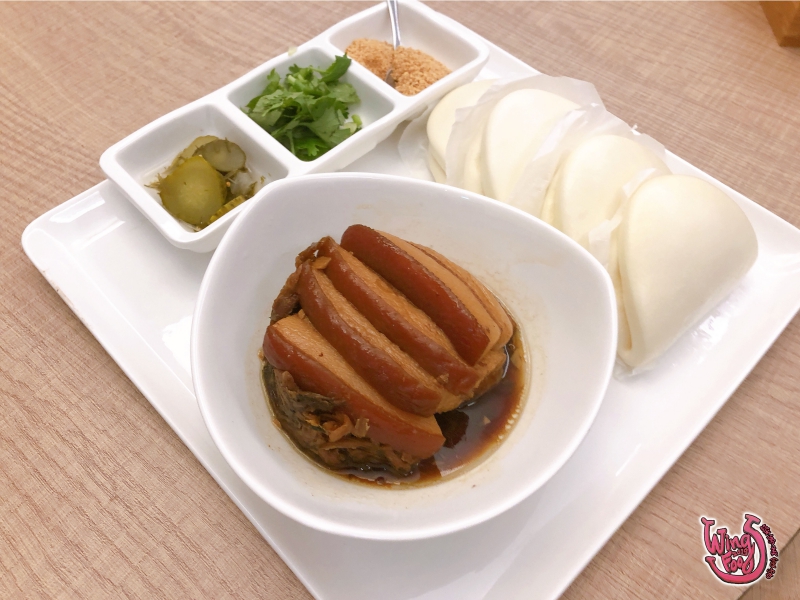 第二道是「 梅干扣肉包 」,滷至入味的爌肉、酸菜,多加了酸黃瓜提味,讓口味更清新。