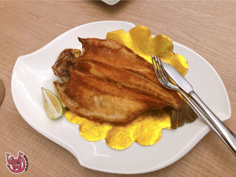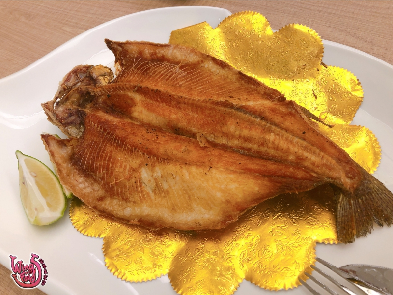 第九道「 鹽煎鱒魚 」, 這道爸爸媽媽都很喜歡,煎的很香、檸檬擠上去更是提味,馬上就被分食光光。