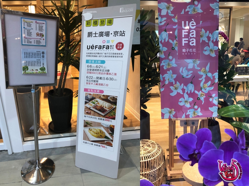 這天Wings跟家人一同來用餐,因為台北捷運站政策或設計的關係,柚子花花沒有太大、太凸顯的醒目招牌,裝潢有的是簡樸、輕鬆的歐法風格,結合客家紙傘、花布、柚子花、燕子,有溫暖像在自己家的氛圍。
