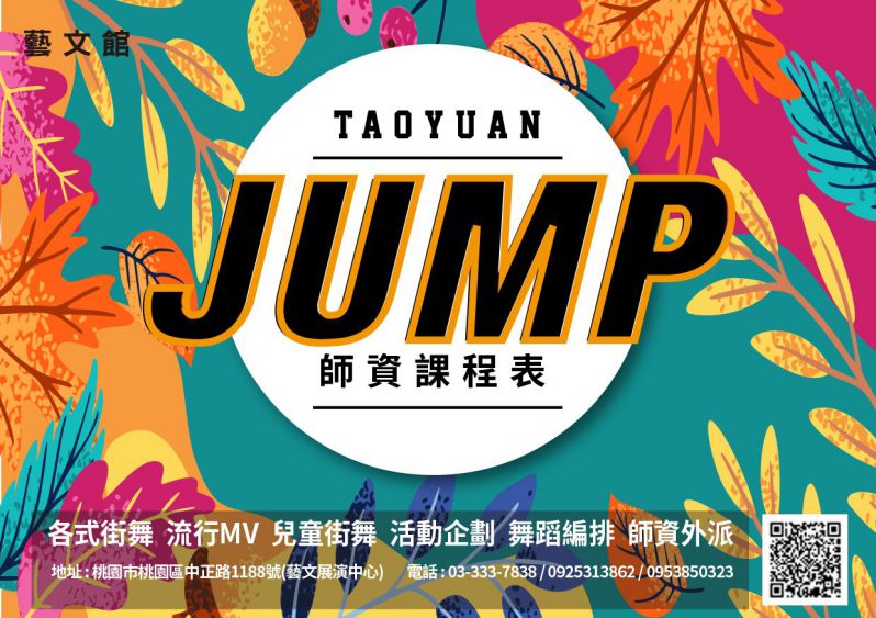 「JUMP」有著深厚的教學及演出經驗,致力於推廣街舞文化,優良的師資團隊、專業的舞蹈水準,提供舞蹈教學、肢體開發、升學輔導、活動企劃、演出編排、活動演出、教室出借等服務。適合各種成人及兒童學習的舞蹈課程,培育新生代專業舞蹈人才。除了原先的站前館,九月開始又多了一處藝文館,讓喜愛跳舞的朋友多了一個好去處。