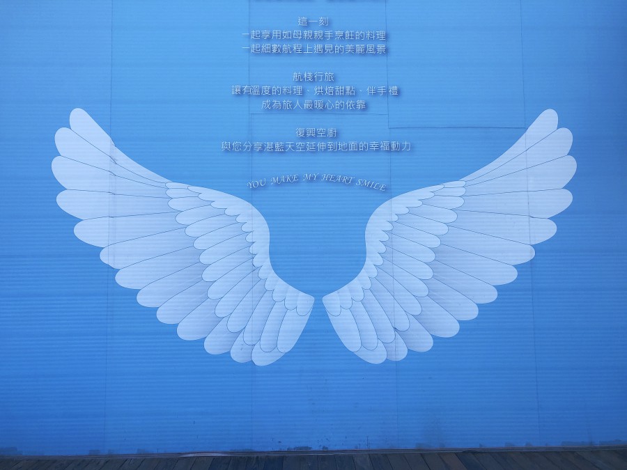 蒐藏散落各地的翅膀,2019/11/24遇見第11對翅膀,在復興航棧門口遇到的翅膀,原來買麵包的人這麽多,新開的座位區很舒適。