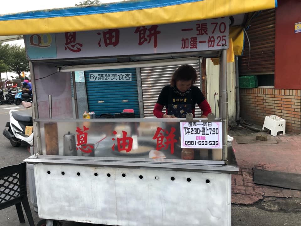 這家蔥油餅小吃攤,位於長沙街、陽明12街的巷口,一直都出現在Wings的生活裡,經常傍晚的晚餐前肚子餓時,媽媽都會買個一張給我們當點心,從小到現在都是如此,賣餅的阿姨很勤奮,幾乎天天出來擺攤,除非下大雨不適合擺攤才不會出現,不然都會看到她桿麵皮的身影,阿姨的麵皮都是手工自己桿、自己做,不是那種冷凍的,剛煎起來的皮很酥脆、有很多層、和特別的香氣,不到絕頂好吃,但是會想念的味道,再加蛋或加醬又感覺不同~一份$20、加蛋$25、一張$70、可以分成四份,歡迎大家路過陽明公園、長沙街、建新公園時,可以吃吃看,分享給大家唷!
