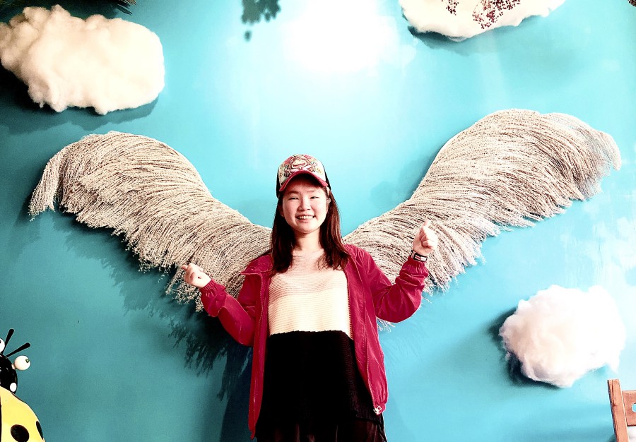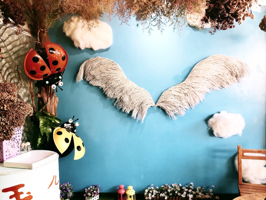 蒐藏散落各地的翅膀,2020/03/01第23對翅膀,在前往嘉義太平雲梯的路上遇到的,起先以為是小招牌,但看到廣告版有紅紅的翅膀被吸過去,結果店家說室內有實景可以拍,邀請我們進去,牆上大大自製的翅膀很用心佈置,店家說冬天是白色、夏天是紅色,所以今天拍到白色的翅膀,說下週就會換成紅色的~只好有機會再來拍~順便買了一杯紅茶愛玉是用高山茶泡得~還不錯,店家也說他們喜歡翅膀也會看到就拍,這有夢想的事也讓我們有共同話題,下次我要去路過鞋墊翅膀~再分享給大家摟!