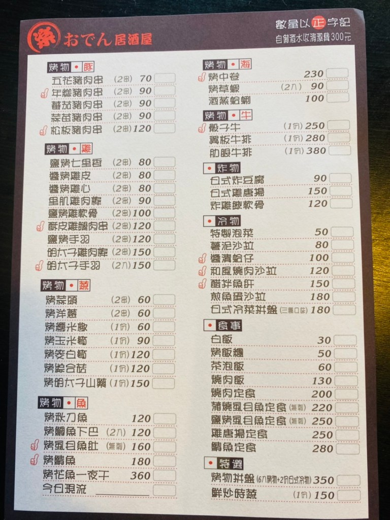 ◎店家賣什麼餐點:定食便當、關東煮盛合、手作串燒(烤物)、炸物、冷物、食事。