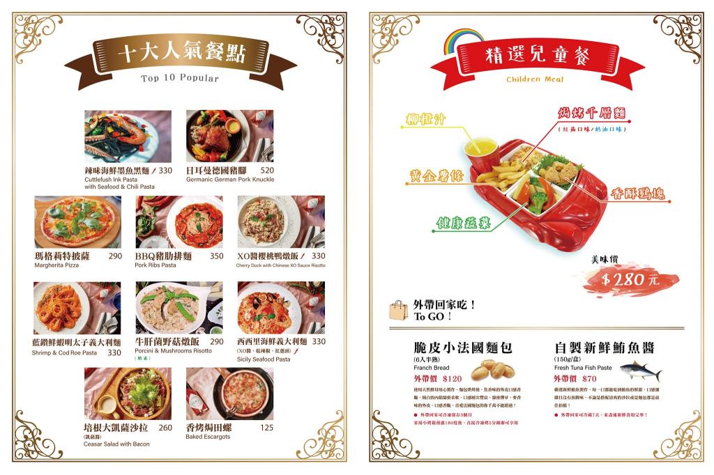 ◎店家賣什麼餐點:義大利麵、義大利燉飯、起司焗烤、義式湯麵、濃湯、麵包、沙拉、前菜、美味主菜、薄皮披薩、經典排餐…義式料理。