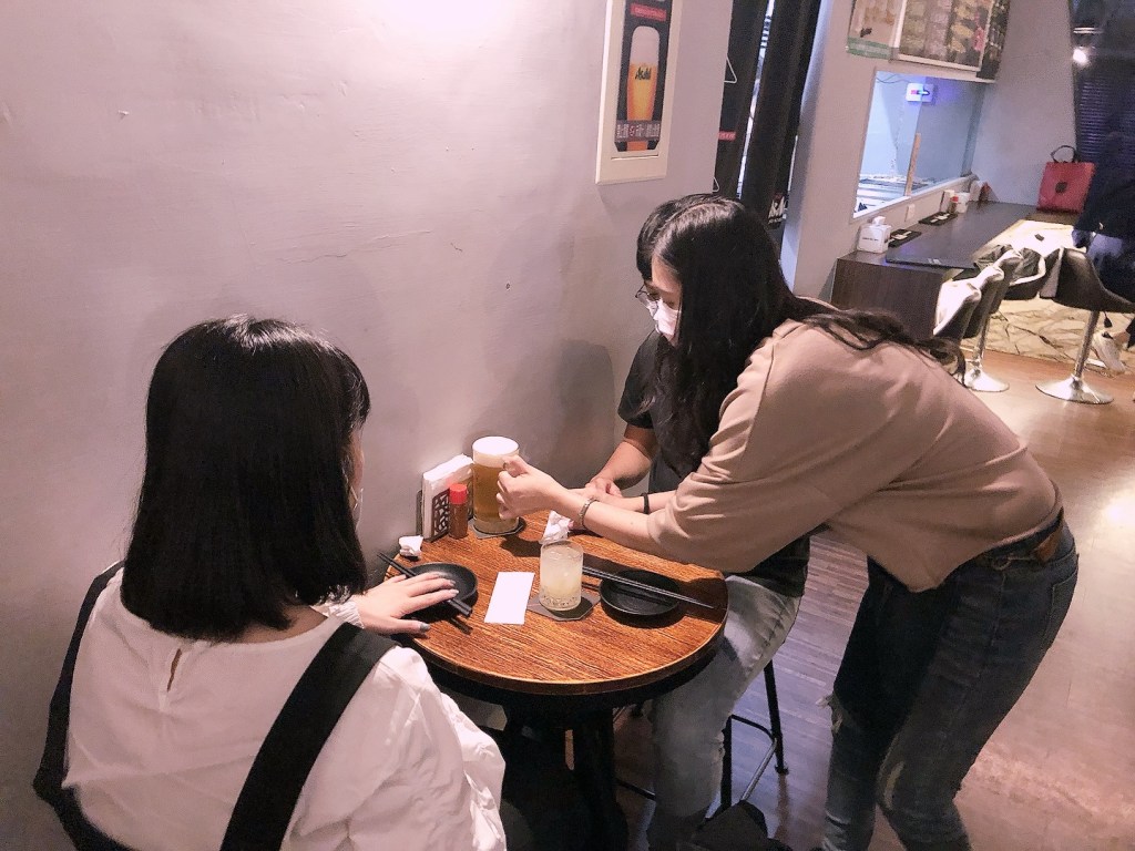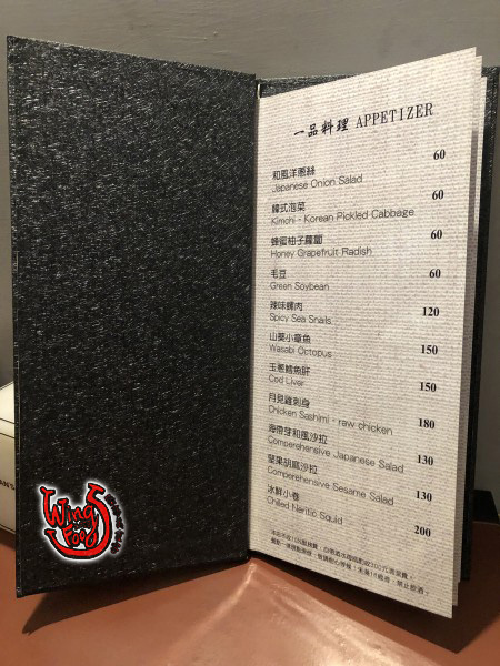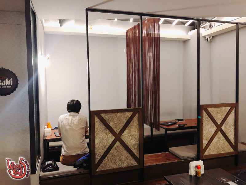 迎面而來是一張親切的笑臉–招呼我們的老闆娘,詢問著我們是不是剛下班?並引領我們走到最裡面有隔間的座位區,大約是晚上八點多的時間,當時的客人並不多,所以很慶幸能坐到這個半開放像VIP的位置。