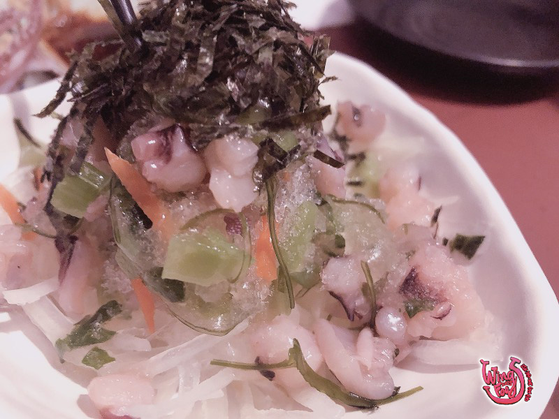第二道:山葵小章魚,Q彈脆脆的章魚,這道一般般,芥末再嗆一些會更好!