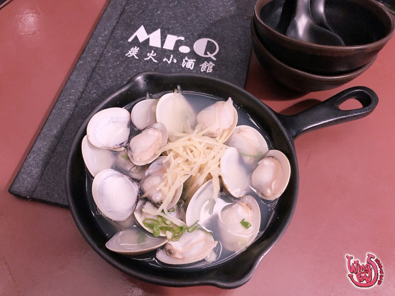吃到這,感覺好像差了什麼?阿!對!就是少了什麼熱湯、米飯之類的暖胃飽肚,第Mr.Q的煮物是熱湯的有四種,Wings鍾愛「酒蒸蛤蜊」和主食的「明太子炒烏龍」,基本盤CP值也相當有水準,蛤蠣很大顆,肉質鮮甜、炒烏龍份量很足不會太乾,吃完這兩道已經算很飽了!